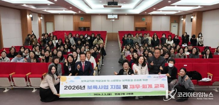 코리아타임뉴스 이아름 기자 | 연제구는 지난 2월 3일 연제구청 구민홀에서 관내 어린이집 원장 및 보육교사 120여 명을 대상으로 ‘2026년 보육사업 지침 개정사항 및 재무·회계 교육’을 실시했다.