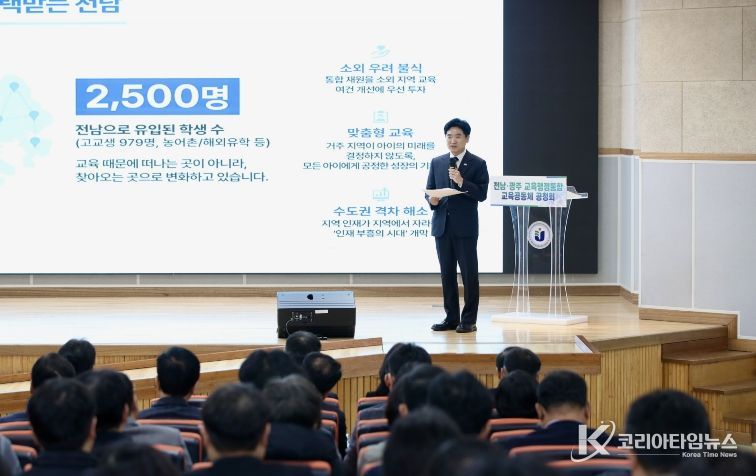 코리아타임뉴스 사회팀 | 전라남도교육청이 2월 6일 전라남도교육청교육연구정보원과 국립순천대학교 70주년기념관 우석홀에서 전남·광주 교육행정통합을 주제로 교육공동체 공청회를 열고 정책 비전과 추진 방향을 공유했다.