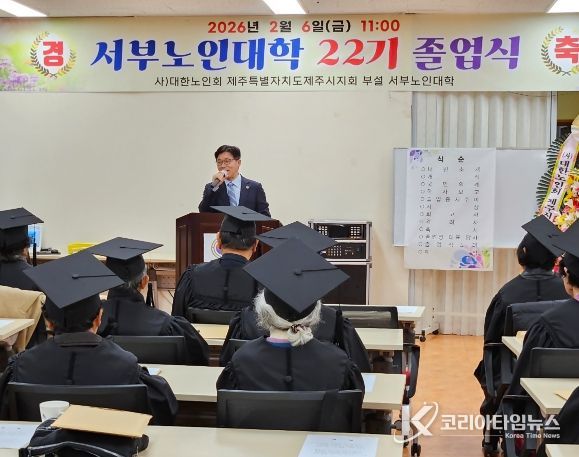 코리아타임뉴스 노승선 기자 | 현원돈 제주시 부시장은 2월 6일 제주시 서부노인복지회관에서 열린 제22기 서부노인대학 졸업식에 참석해 어르신들께 존경의 마음을 전했다.