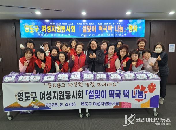 코리아타임뉴스 이아름 기자 | 영도구 여성자원봉사회(회장 이춘희)는 지난 2월 4일, 민족의 명절 설을 맞아 관내 저소득 홀로 어르신 70여 명을 대상으로 떡국떡 나눔 행사를 가졌다.