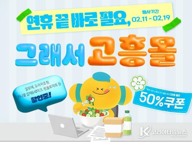 고흥몰은 오는 2월 11일부터 19일까지 9일간 '연휴 끝 바로 필요, 그래서 고흥몰' 기획전을 열고 알로에, 도라지청, 취나물 셰이크 등 건강 먹거리를 최대 50% 할인 판매한다고 밝혔다.