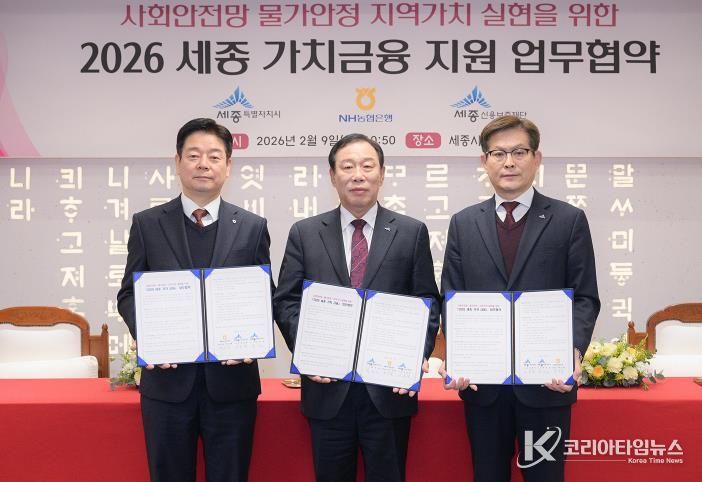 코리아타임뉴스 세종취재분부 | 세종특별자치시가 9일 시청에서 농협은행, 세종신용보증재단과 ‘세종 가치 금융’ 소상공인 금융지원 업무협약을 체결했다.