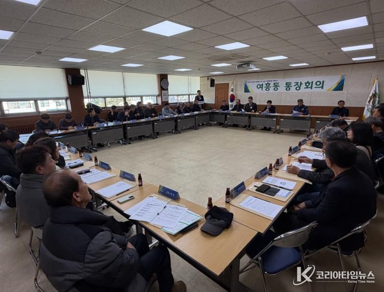 코리아타임뉴스 기동취재팀 | 여주시 여흥동은 6일 오전, 행정복지센터 2층 회의실에서 제10대 김광덕 부시장과 함께하는 2월 1차 통장회의를 개최했다. 회의에는 김광덕 부시장, 김영완 여흥동장, 정지남 홍문지구대장, 이병길 여주농협조합장 및 33개 마을 통장이 참석했다.