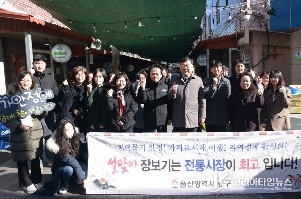 코리아타임뉴스 울산취재본부 | 울산 동구는 민족 대명절 설을 맞이하여 2월 9일 오전 11시 전하시장에서 공무원, 시장 상인회 등 30여 명과 함께 전통시장 이용 캠페인 및 전통시장 장보기 행사를 했다.