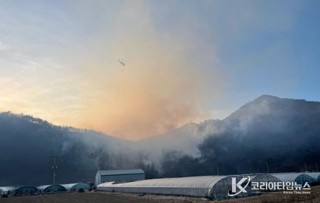 17시 현재 진화율은 60%다. 도는 공중과 지상의 진화 역량을 총동원해 인명과 재산 피해 없이 산불을 조기에 진화하는 데 최선을 다할 방침이다.