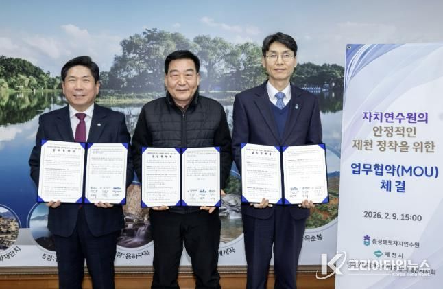 코리아타임뉴스 충북취재본부 | 지난 9일 제천시와 충청북도자치연수원, (사)대한숙박업중앙회제천시지회는 제천시로 이전한 충청북도자치연수원 교육생의 숙박 편의 지원을 위한 업무협약을 체결했다.