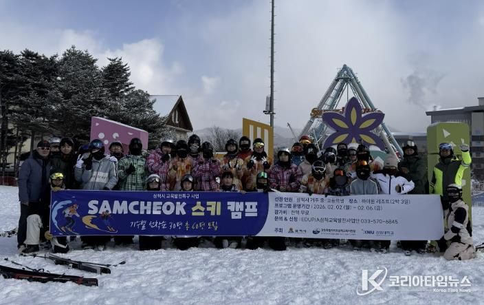 코리아타임뉴스 이아름 기자 | 삼척시 교육발전특구 사업의 일환으로 마련된 '삼척 스키캠프'가 지난 2월 2일부터 6일까지 정선 하이원 리조트에서 관내 중·고등학생 60명이 참여한 가운데 성공적으로 마무리됐다. 이번 캠프는 지역 청소년들에게 동계 스포츠 체험 기회를 제공해 기초 체력 증진과 정서적 성장을 돕기 위해 2박 3일씩 총 2회차로 운영됐다.