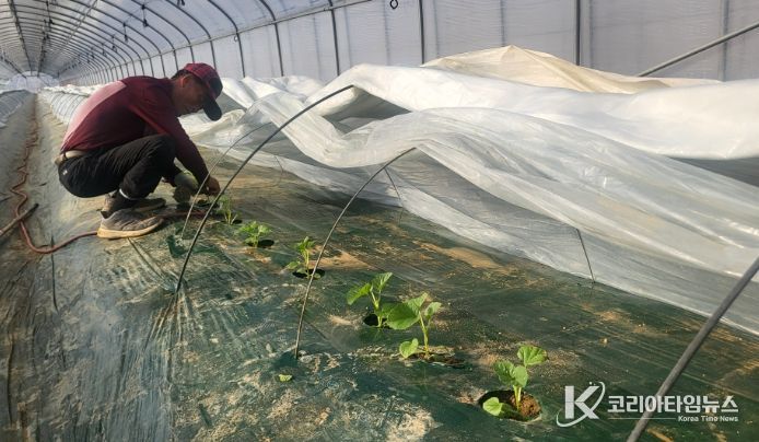 천안에서 20년이 넘게 멜론 농사를 지어온 베테랑 농업인 이필영(75)씨는 보통 재배보다 30여 일 빠르게 정식에 나섰다.