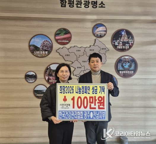 코리아타임뉴스 노승선 기자 | 한국건강관리협회 광주전남지부가 설 명절 어려운 이웃을 위해 함평군에 사랑의 성금을 기탁하며 따뜻한 나눔을 실천했다.