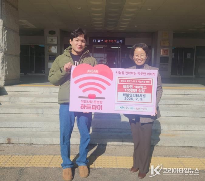 코리아타임뉴스 윤광희 기자 | 안산시는 지난 9일 비엠인터내셔널(대표 김보미)로부터 비타민 100상자(100만 원 상당)를 기탁받았다고 10일 밝혔다.