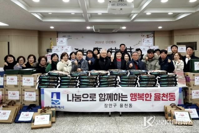 코리아타임뉴스 사회팀 | 수원시 장안구 율천동 행정복지센터는 지난 9일, 설 명절을 맞아 관내 어려운 이웃에게 따뜻한 나눔을 전하고자 ‘우리동네 이웃 나눔행사’ 전달식을 개최했다.