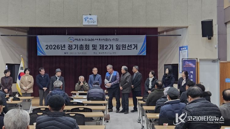코리아타임뉴스 전북취재본부 | 진안군 백운면 백운통합돌봄사회적협동조합(이사장 이남근)은 지난 2월 7일 백운면 행정복지센터 강당에서 조합원과 내빈 등 100여 명이 참석한 가운데 2026년 정기총회와 제2기 임원 선거를 진행했다.