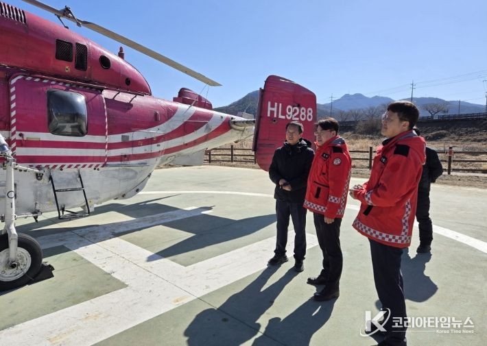코리아타임뉴스 김태훈 기자 | 경남 밀양시는 산불재난 국가위기경보가 ‘경계’ 단계로 격상됨에 따라, 지난 9일 무안면에 위치한 임차헬기 계류장을 방문해 산불 대응 역량을 집중 점검했다.
