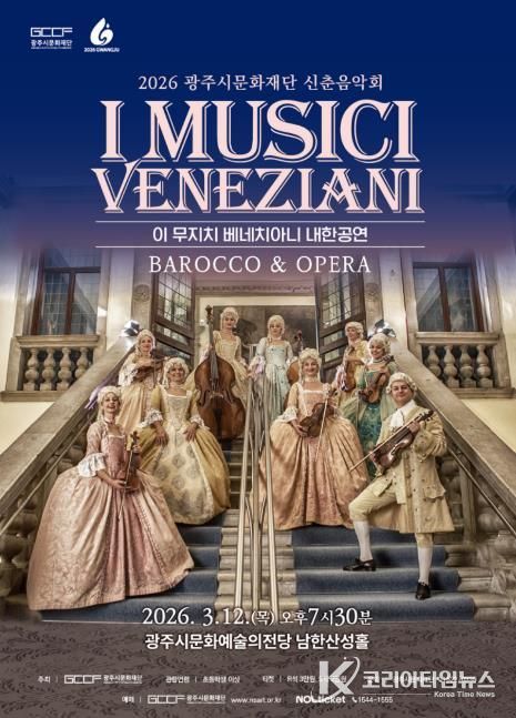 코리아타임뉴스 이아름 기자 | (재)광주시문화재단은 2026년 신춘음악회로 이탈리아 베네치아니를 기반으로 활동해온 바로크앙상블 〈이 무지치 베네치아니(I Musici Veneziani) 내한공연 – Barocco & Opera〉를 개최한다. 이번 공연은 베네치아 황금시대의 음악과 문화를 무대 위에 생생히 재현하며, 관객들에게 클래식을 통한 특별한 시간여행을 선사할 예정이다.