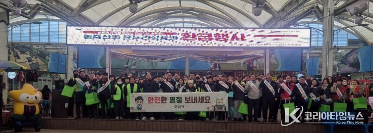 코리아타임뉴스 경북취재본부 | 경산시는 설 명절을 앞두고 10일 경산공설시장에서 ‘안전한 설 명절 보내기’를 주제로 민·관 합동 안전 문화운동 캠페인을 실시했다.
