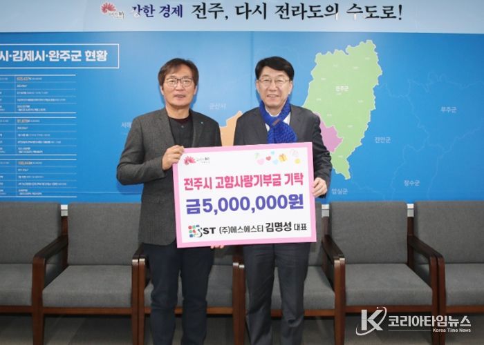전주시는 10일 김명성 ㈜에스에스티 대표가 전주시장실을 찾아 고향사랑기부금 500만 원을 기부했다고 밝혔다.