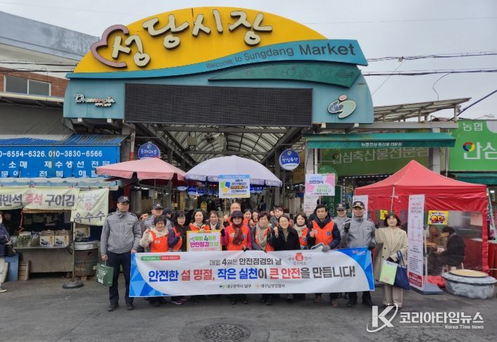 코리아타임뉴스 노승선 기자 | 대구 남구는 2월 10일 대명4동 청춘골목 조성지 일원의 성당시장에서 설 명절을 앞두고 지역 주민의 안전의식을 높이기 위한 안전문화운동 캠페인을 실시했다.