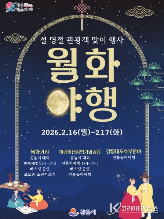 코리아타임뉴스 이아름 기자 | 강릉시는 설 명절을 맞아 고향을 찾는 귀성객과 관광객들에게 풍성한 볼거리와 즐길거리를 제공하기 위해 오는 16일부터 17일까지 양일간 설 맞이 행사'월화야행'을 개최한다.