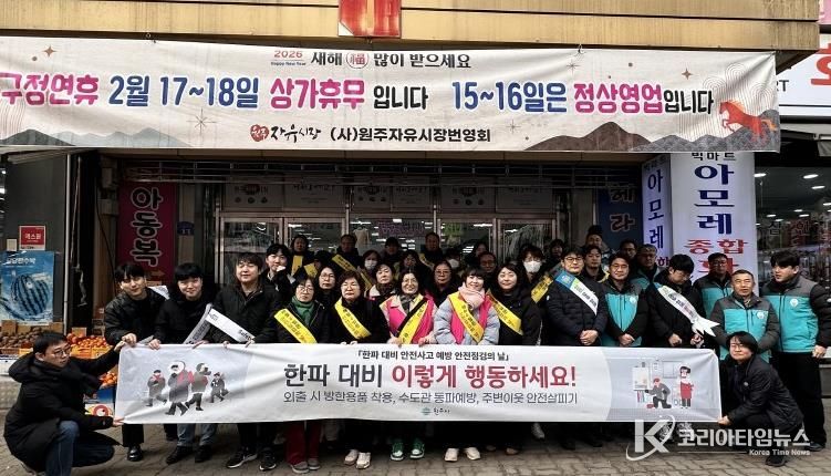 코리아타임뉴스 이아름 기자 | 원주시는 2월 안전점검의 날을 맞아 10일 자유시장 일원에서 한파 대비 안전사고 예방 캠페인을 전개했다.