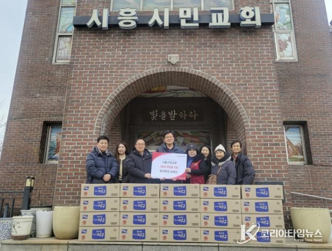 코리아타임뉴스 경기취재본부 | 시흥시 미산동에 위치한 시흥시민교회는 지난 2월 10일, 신현동 지역사회보장협의체에 즉석 떡국 20상자를 전달하며 이웃 사랑을 실천했다.