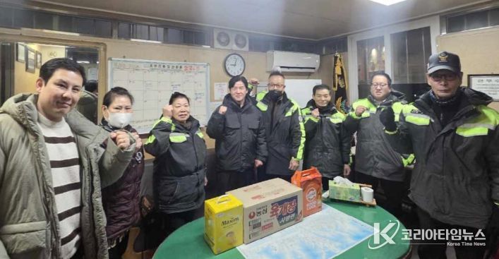 코리아타임뉴스 경기취재본부 | 동두천시 보산동 행정복지센터는 지난 10일 설 연휴를 앞두고 지역 치안을 위해 묵묵히 근무하는 자율방범대원들을 격려하고자 관내 태풍지대 방범초소를 방문해 감사의 뜻을 전했다.