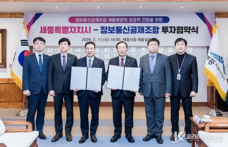코리아타임뉴스 세종취재분부 | 세종특별자치시와 정보통신공제조합이 11일 시청 세종실에서 정보통신공제조합 세종회관 건립을 위한 470억 원 규모의 투자협약을 체결했다.