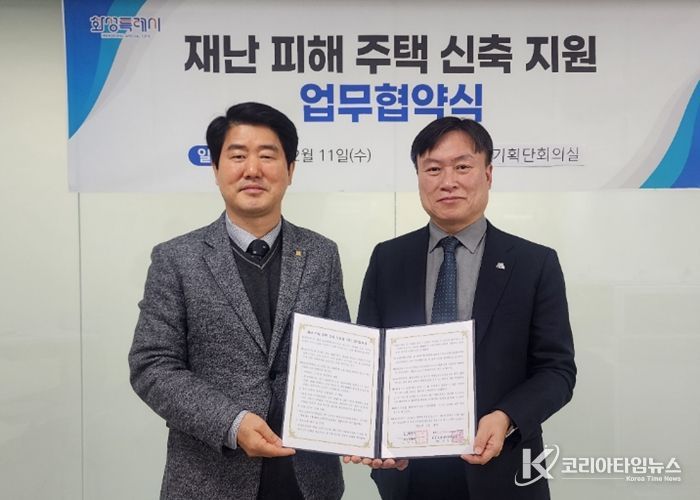 코리아타임뉴스 사회팀 | 화성특례시는 11일 시청 총괄기획단회의실에서 화성·오산지역건축사회와 함께 재난 피해 주택의 신속한 복구와 시민의 조기 주거 안정을 지원하기 위한 업무협약을 체결했다.