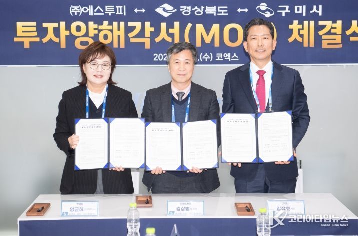 코리아타임뉴스 김택호 기자 | 구미시가 대규모 친환경 에너지 산업 투자 유치에 성공하며, 지역 산업 구조를 미래 에너지 중심으로 나아가는 전환점을 마련했다. 구미시는 11일 코엑스에서 ㈜에스투피와 투자양해각서(MOU)를 체결하고, 대규모 양산 시설을 구미에 구축하는 데 협력하기로 했다.