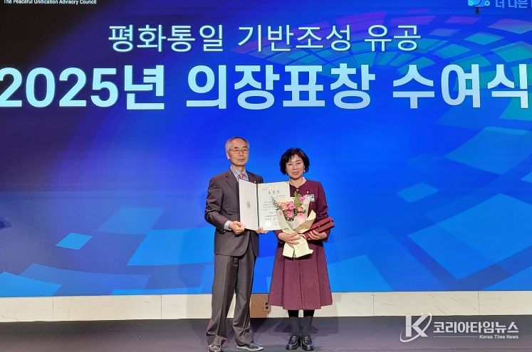 코리아타임뉴스 경북취재본부 | 민주평화통일자문회의 예천군협의회(회장 조경섭) 김재숙 자문위원은 11일 안동 스탠포드호텔에서 개최된 ‘2025년 민주평화통일자문회의 의장 표창 수여식’에서 의장(대통령) 표창을 수상했다.