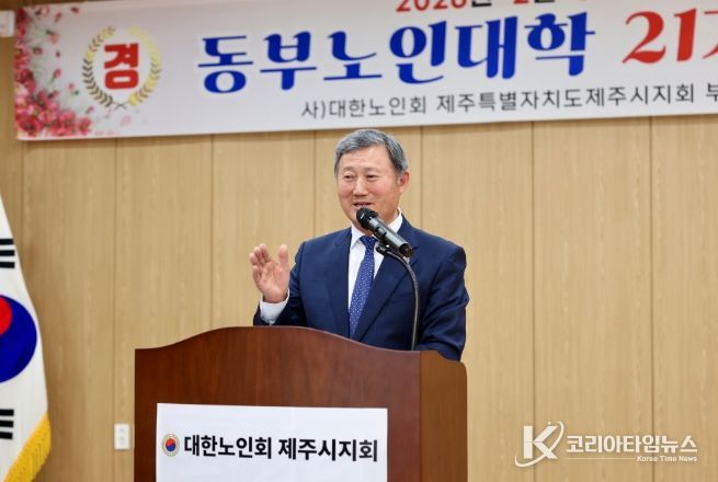 코리아타임뉴스 노승선 기자 | 김완근 제주시장은 2월 11일 조천주민교류센터 회의실에서 열린 제21기 동부노인대학 졸업식에 참석해 축하 인사를 전했다.