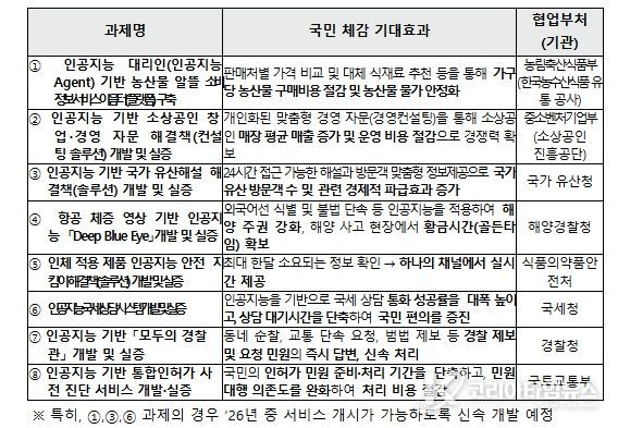 코리아타임뉴스 오영주 기자 | 과학기술정보통신부는 '인공지능 민생 10대 과제(프로젝트)'를 본격 추진하기 위해, 과제(프로젝트) 중 8개 과제의 사업자 선정을 위한 공모를 2월 11일부터 개시한다고 밝혔다.