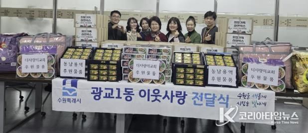 광교1동은 이날 전달된 성금과 물품을 저소득 가정과 취약계층, 홀몸 어르신 등 도움이 필요한 이웃들에게 전달해 따뜻하고 풍성한 설 명절을 보낼 수 있도록 지원할 예정이다.