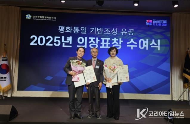 코리아타임뉴스 노승선 기자 | 민주평통 문경시협의회 천금선 부회장과 박인국 자문위원은 11일 안동 스탠포드호텔에서 열린 ‘2025년 민주평화통일자문회의 표창 수여식’에서 의장(대통령) 표창을 수상했다.
