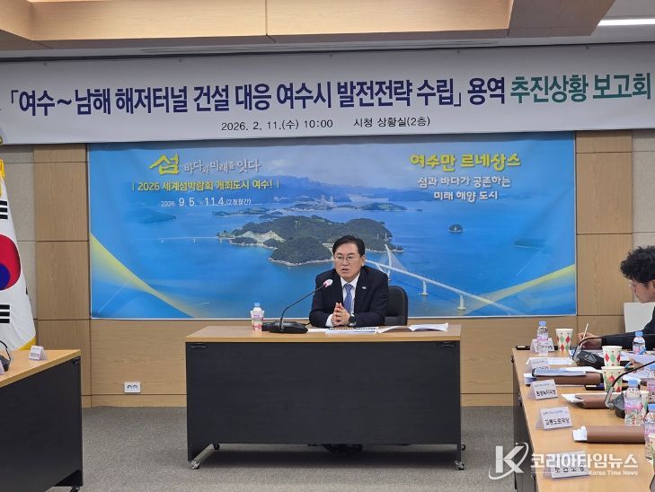 코리아타임뉴스 전남취재본부 | 여수시는 여수~남해 해저터널 건설에 선제적으로 대응하기 위해 여수시 발전전략 수립 용역의 추진 상황을 점검하고 관계부서 의견을 수렴하기 위한 보고회를 개최했다.