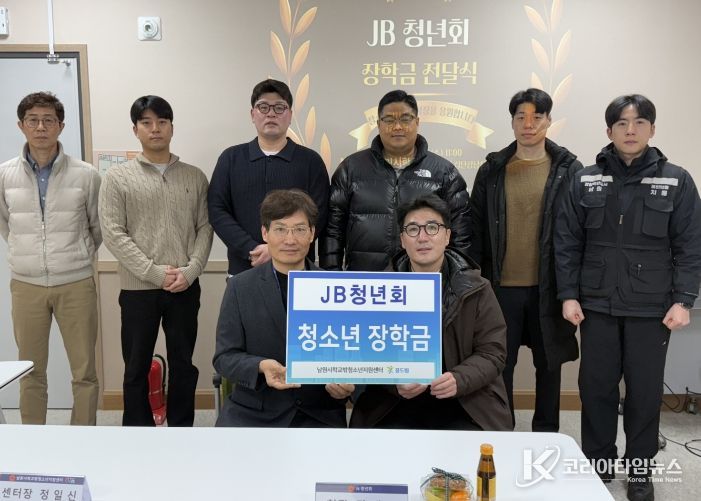 코리아타임뉴스 김태훈 기자 | 남원시가 위탁하고 사단법인 남원CYA(협회장 김범준)가 운영하는 남원시학교밖청소년지원센터(센터장 정일신)는 지난 2월 11일 남원시 대표적인 청년봉사단체인 JB 청년회(회장 강태균)로부터 회원들의 마음을 모은 장학금을 전달받았다.