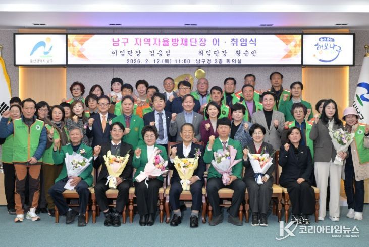 코리아타임뉴스 울산취재본부 | 울산 남구 지역자율방재단은 12일 남구청 3층 회의실에서 단장 이·취임식을 개최했다.