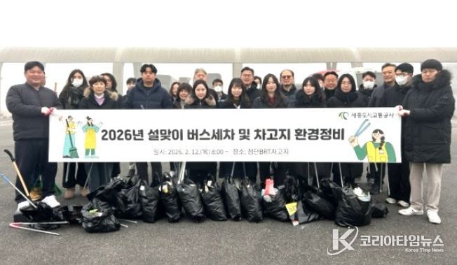 코리아타임뉴스 세종취재분부 | 세종도시교통공사는 2026년 설 명절을 맞아 버스를 이용하는 시민들에게 쾌적한 교통환경을 제공하기 위해 버스 세차 및 차고지 환경정비를 실시했다고 밝혔다.
