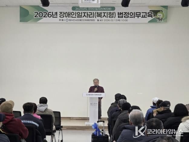 코리아타임뉴스 경기취재본부 | 동두천시장애인단체총연합회는 장애인일자리(복지일자리) 참여자의 근로 권익 보호와 안전한 근무환경 조성을 위해 2026년 법정 의무교육을 실시했다. 이번 교육에는 참여자 103명이 참석했다.