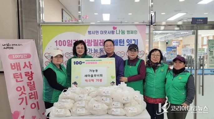 코리아타임뉴스 기동취재팀 | 의정부시 가능동주민센터는 2월 12일 가능동 새마을부녀회가 설 명절을 맞아 떡국떡 70봉을 기탁했다고 밝혔다.
