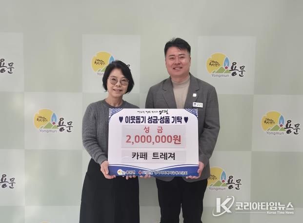 코리아타임뉴스 기동취재팀 | 양평군 용문면은 지난 12일 관내 카페트레져가 어려운 이웃을 위해 사용해 달라며 성금 200만 원과 함께 명절을 외롭게 보내는 어르신들을 위한 유과와 약과 각 2박스씩, 총 4박스를 기탁했다고 밝혔다.