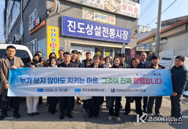 코리아타임뉴스 사회팀 | 진도교육지원청은 2월 13일 우리 민족 고유 설 명절을 앞두고 경기 침체 및 물가 상승으로 어려움을 겪고 있는 전통시장 활성화를 위해 '설 명절 맞이 전통시장 방문의 날'을 운영했다.