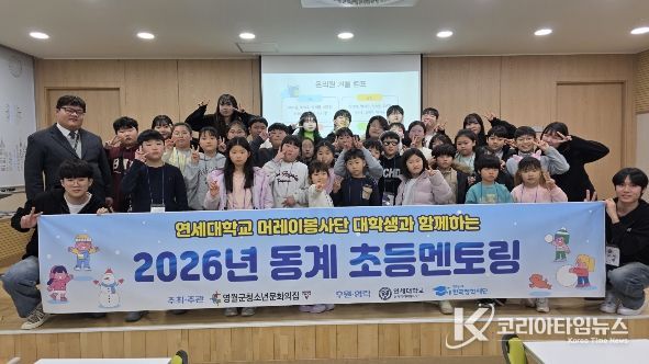 코리아타임뉴스 이아름 기자 | 영월군청소년문화의집은 지난 2월 9일부터 13일까지 5일간 지역 초등학생과 대학생 멘토가 함께한 '연세대학교 머레이봉사단과 함께하는 2026년 동계 초등 멘토링' 프로그램을 성황리에 마쳤다고 밝혔다.