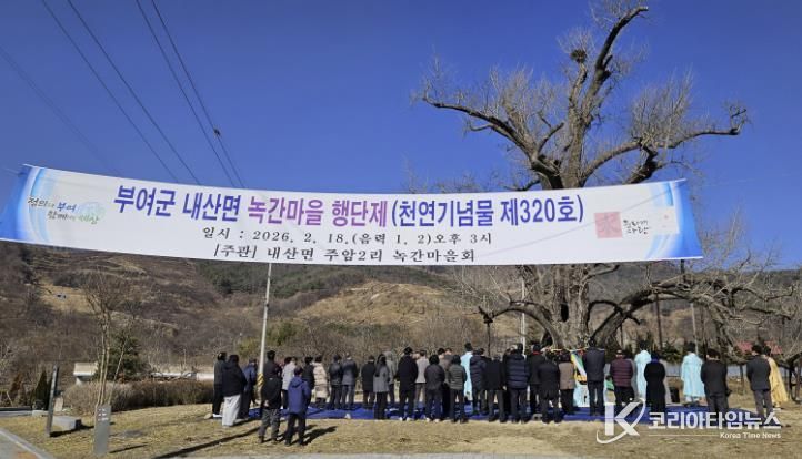 코리아타임뉴스 충남취재본부 | 부여군 내산면 주암2리 녹간마을에서 나라의 평안을 염원하고, 마을 안녕과 풍년을 기원하는 자연유산 민속행사인 ‘행단제[杏壇祭]’가 지난 18일, 천연기념물 주암리 은행나무 앞에서 엄숙하게 거행됐다.