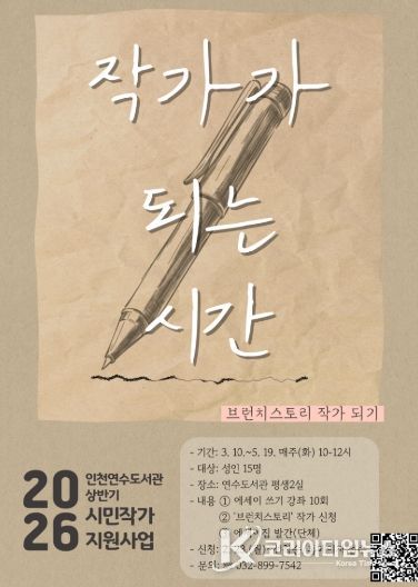 코리아타임뉴스 사회팀 | 인천광역시교육청연수도서관은 인천시민을 대상으로 예비작가 지원 프로그램 ‘작가가 되는 시간’ 참여자를 모집한다.