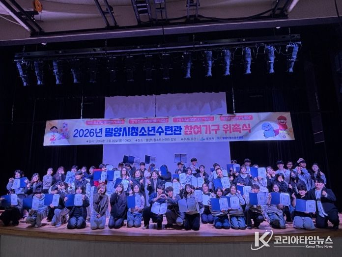 코리아타임뉴스 경남취재본부 | 경남 밀양시는 20일 밀양시청소년수련관에서 청소년들의 자치 역량 강화와 지역사회 참여 확대를 위한 2026년 밀양시청소년참여기구 위촉식을 개최했다고 밝혔다.