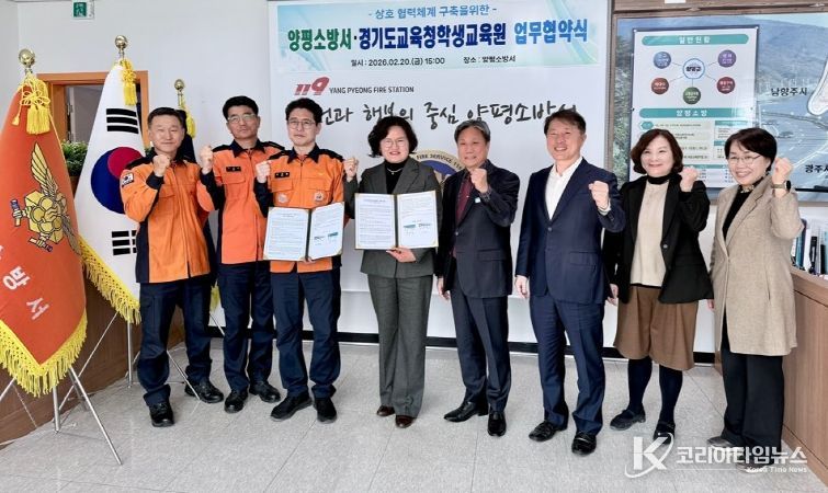 코리아타임뉴스 사회팀 | 경기도교육청학생교육원이 20일 양평소방서(서장 이준희)와 학생 안전교육 강화 및 재난·안전 대응 역량 제고를 위한 업무협약을 체결했다.
