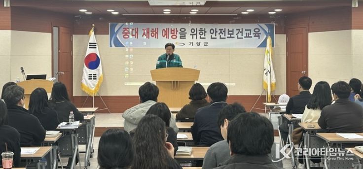 코리아타임뉴스 부산취재본부 | 기장군은 최근 2회에 걸쳐 중대산업재해 예방을 위해 현업업무 및 도급·용역·위탁 사업 시 산업재해 예방활동 절차를 원활히 수행할 수 있도록 직원 200여 명을 대상으로 ‘2026년 안전보건 교육’을 실시했다고 23일 밝혔다.