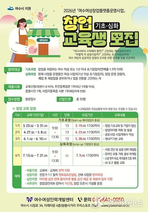 코리아타임뉴스 노승선 기자 | 여수시는 여성의 창업 역량을 강화하고 지역경제 활성화를 위해 3월부터 ‘여수 여성 창업플랫폼 사업’을 추진한다고 밝혔다.