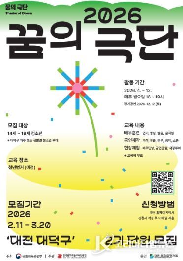 코리아타임뉴스 대전취재본부 | 대전 대덕구는 대덕문화관광재단이 대덕구 거주 청소년을 대상으로 ‘2026 꿈의 극단 - 대전 대덕구’ 2기 청소년 단원을 모집한다고 밝혔다.