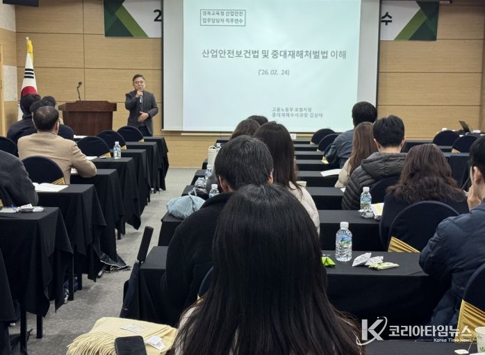 코리아타임뉴스 사회팀 | 경북교육청은 24일부터 25일까지 1박 2일간 경주시에 있는 더케이호텔경주에서 도내 22개 교육지원청 업무 담당자 44명을 대상으로 ‘2026 산업안전보건・중대재해 예방 직무연수’를 개최했다고 밝혔다.
